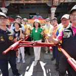 謝國樑為全運會基隆代表隊授旗,勉勵選手再創佳績。