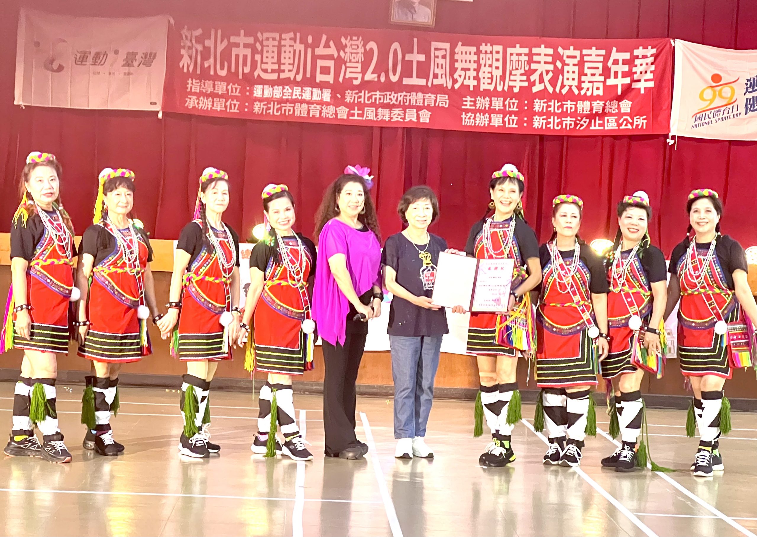 921下午應邀出席在汐止舉辦的新北市運動愛台灣土風舞嘉年華,基隆市幾位土風舞名師擔任頒獎貴賓並上台帶動,場面溫馨熱鬧,非常感人。