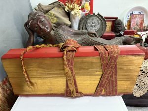 獲得一冊目葉經供奉瞻仰,因「貝葉經」有如佛陀的舍粒子,贍仰貝葉經,有如見佛陀家有「貝葉經」彌足珍貴。香港石景宜博士和石漢基董事長家族是收藏家,早年因緣際會,獲得貝葉經。長輩交代,貝葉經可分冊贈送大陸千年古剎善結佛緣。