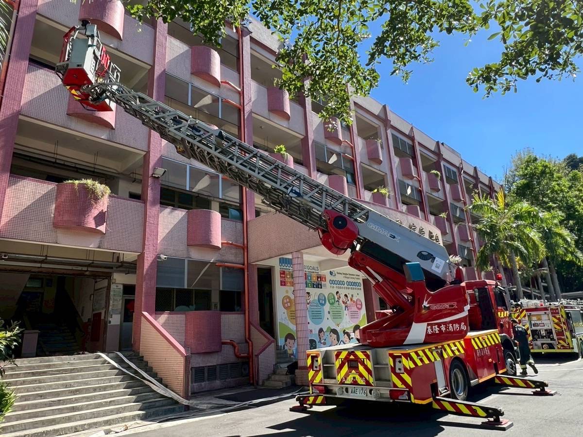 基市消防局在正濱國小辦理火災演練,強化救災應變能力。(基市消防局提供)