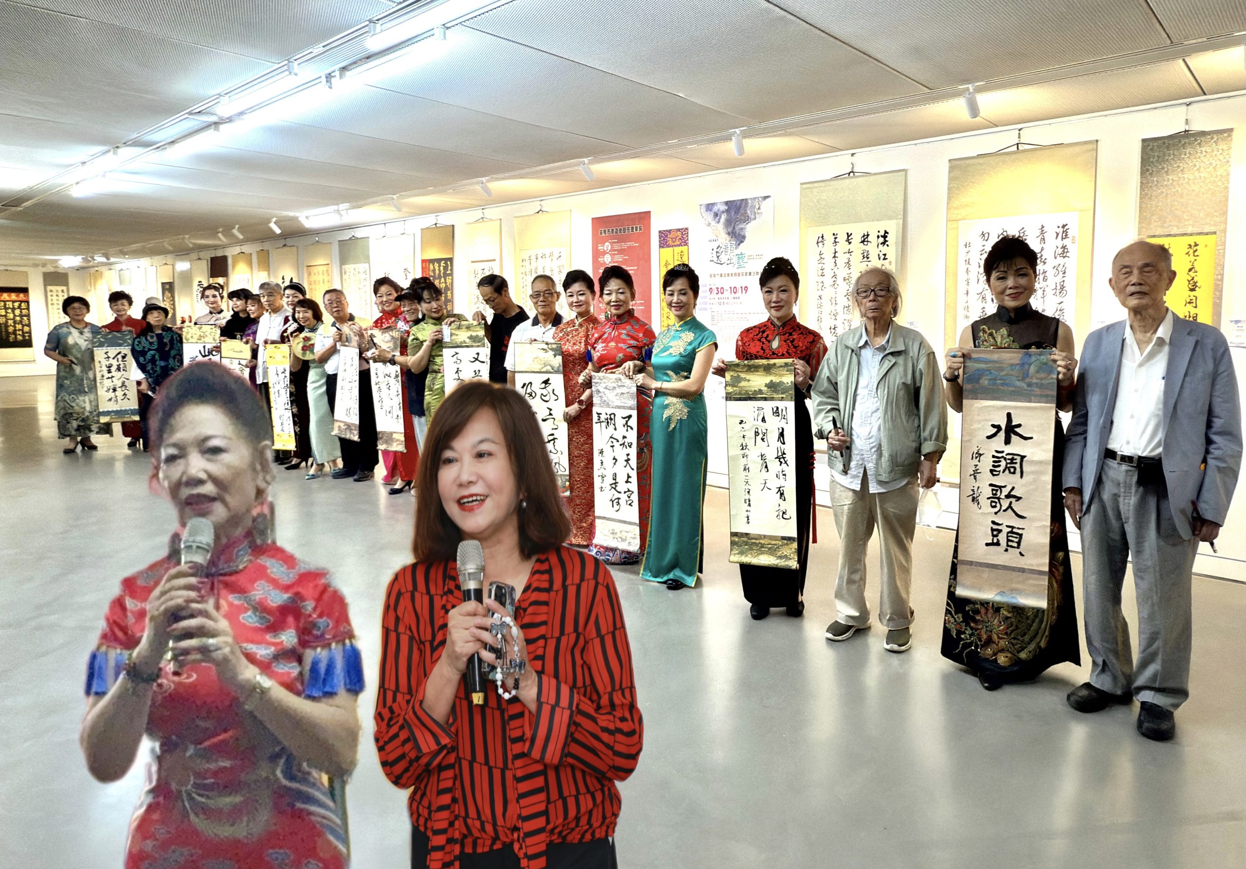 「逸韻出塵— 2025年基隆市書道會聯展」,一場詩書歌舞交融的藝術饗宴,(左下)書道會理事長陳麗雪、副市長邱佩琳(記者柳芬馨攝)