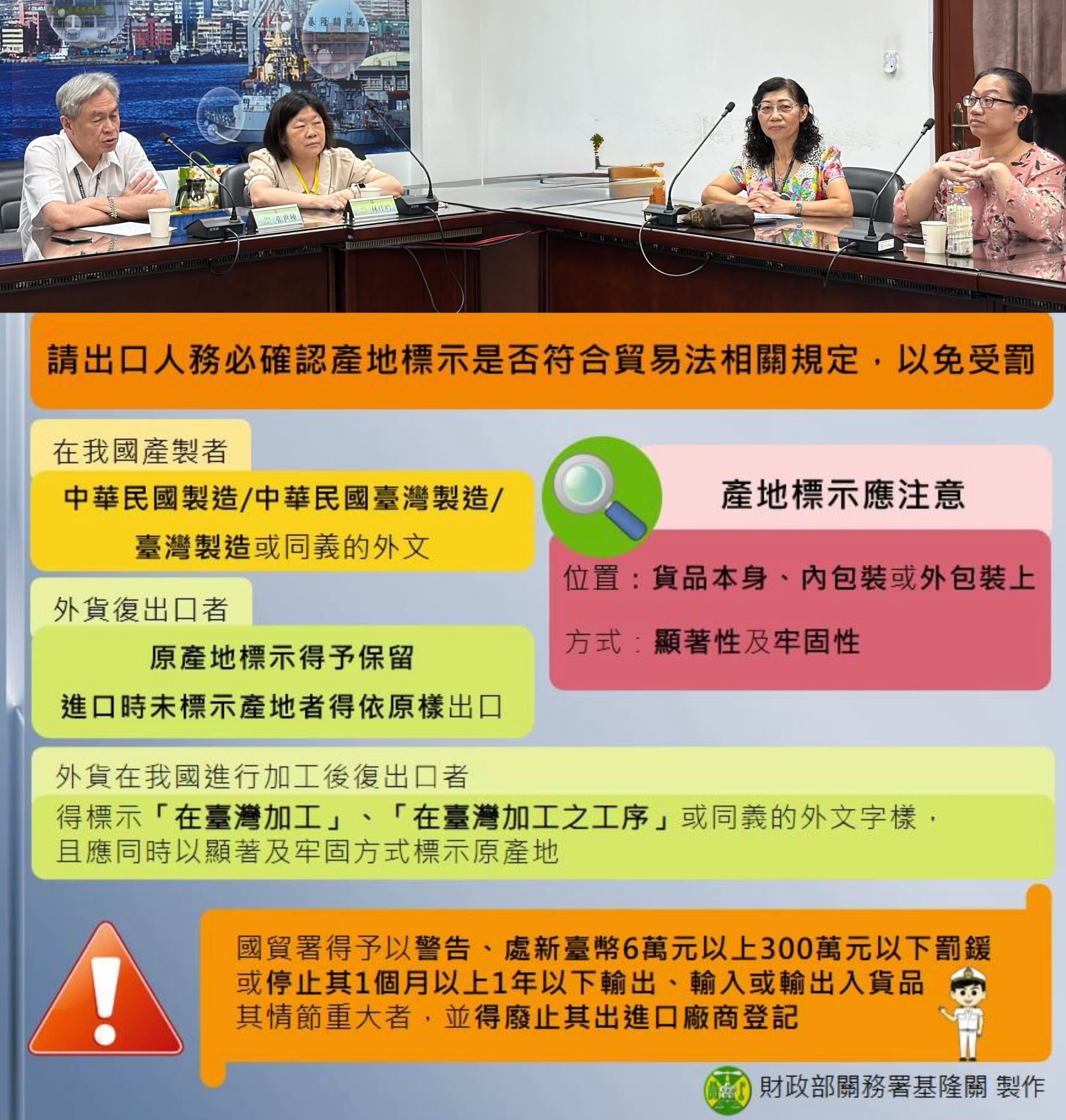 基隆關嚴控國貨洗產地,籲出口人確認標示避免受罰。