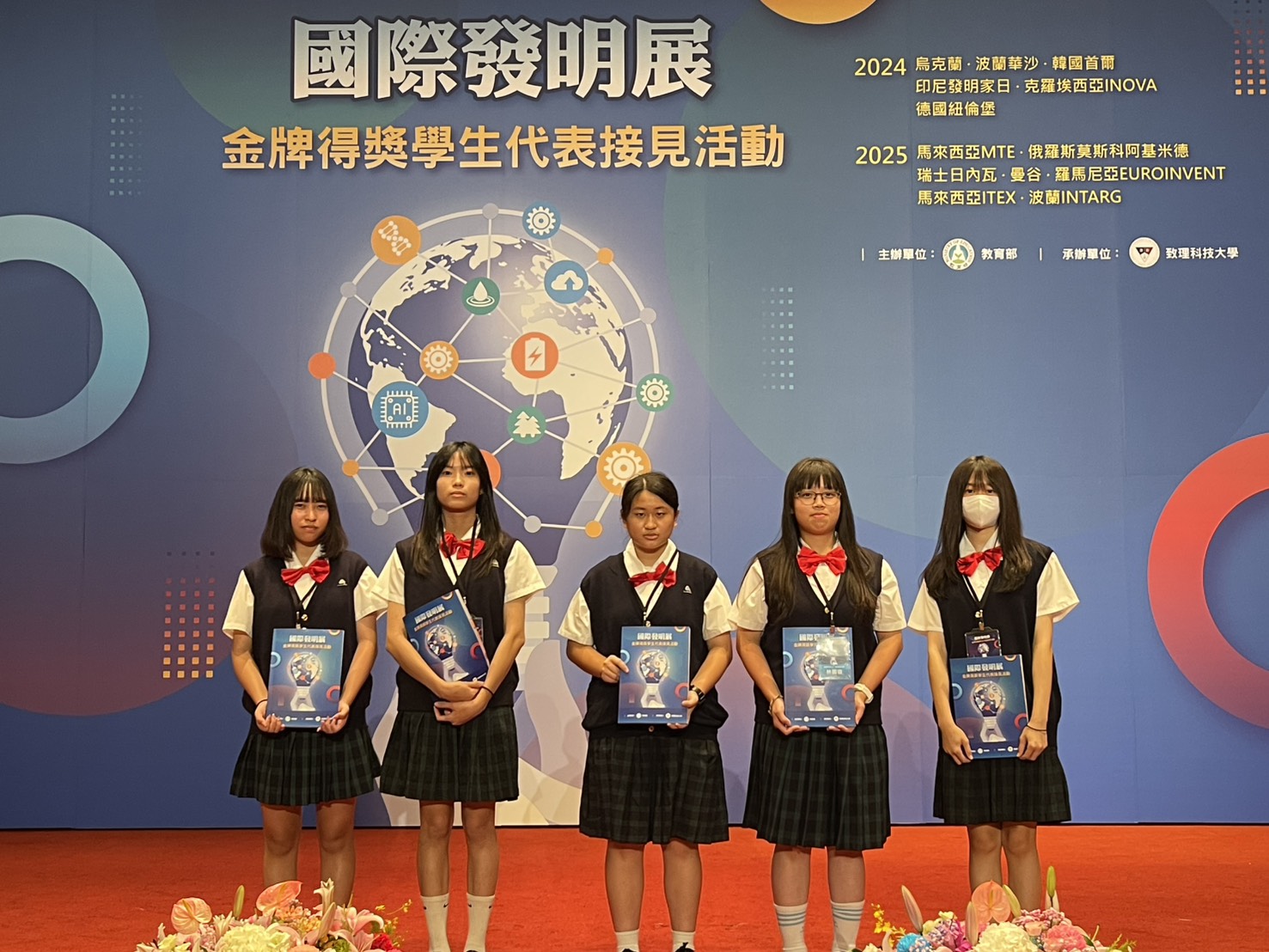 教育部為嘉勉學生在創新發明與創意設計上的卓越表現,日前舉辦接見表揚典禮,由教育部部長鄭英耀親自頒獎,表揚2024及2025年間於烏克蘭、波蘭華沙、韓國首爾、印尼、克羅埃西亞、德國紐倫堡、馬來西亞、俄羅斯莫斯科、瑞士日內瓦、曼谷及羅馬尼亞等地舉辦的13項著名國際發明展中榮獲金牌的優秀學生。