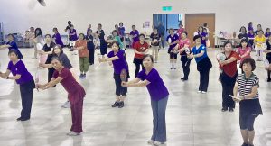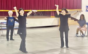 全體老師單人土風舞曲在檢定前的練習。(記者李伯元攝)