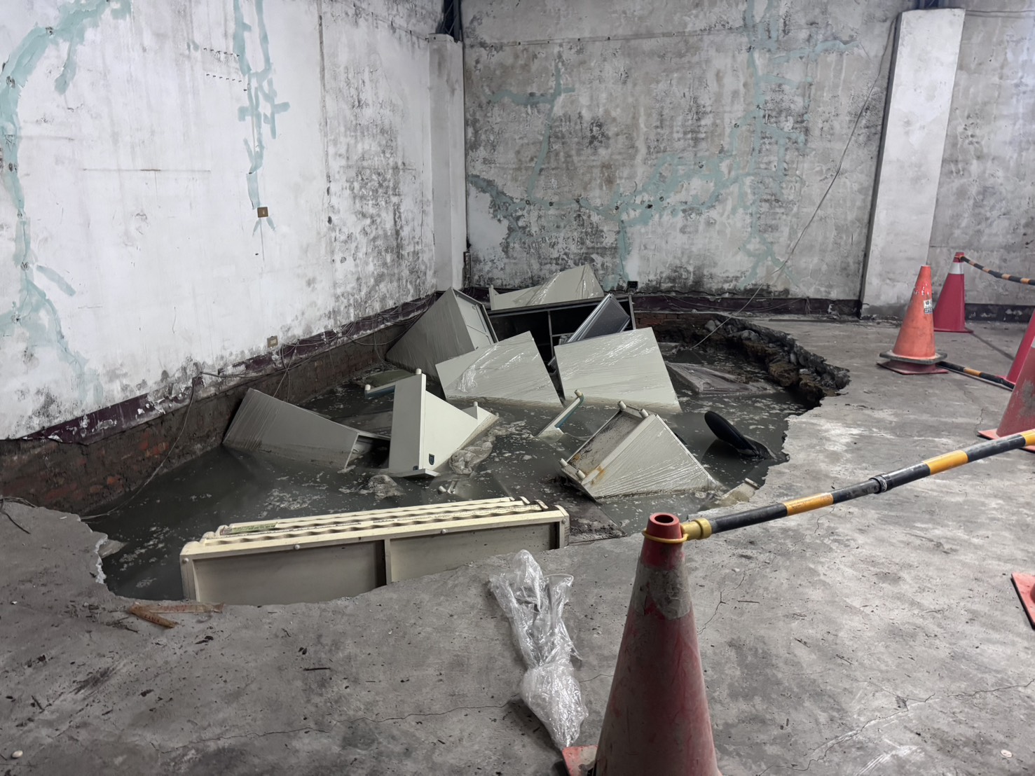 【記者張毅基隆報導】基市中山一路基隆火車站附近的建案,14日上午發生建築工地施工,造成附近民房地面出現約20平方公尺左右的大洞。經通報基市府後已要求建商立即停工,展開工地附近約百餘戶鄰房狀況的檢測,據建商表示,對於出現鄰損的狀況,該公司將負責到底。