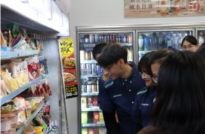 學生們認真認識店內「NO PORK」友善標示之鮮食商品,展開一段貼近多元文化的飲食之旅。(賽珍珠基金會提供)