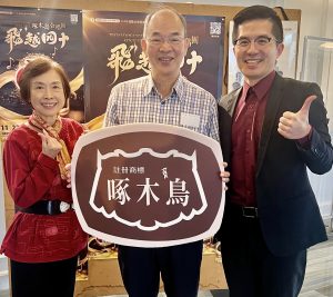 啄木鳥資深團長鄭志中(中)賢伉儷,早先到埸受到團長徐仁斌的熱烈歡迎。(記者李伯元攝)