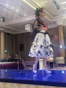 第七屆理事長凃俐安走秀上台。(記者李伯元攝)