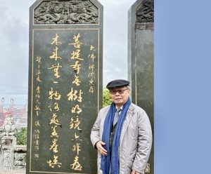 張炳煌教授為我所題,揮毫刻在中正公園大佛寺石碑上的墨寶。(記者李伯元攝)