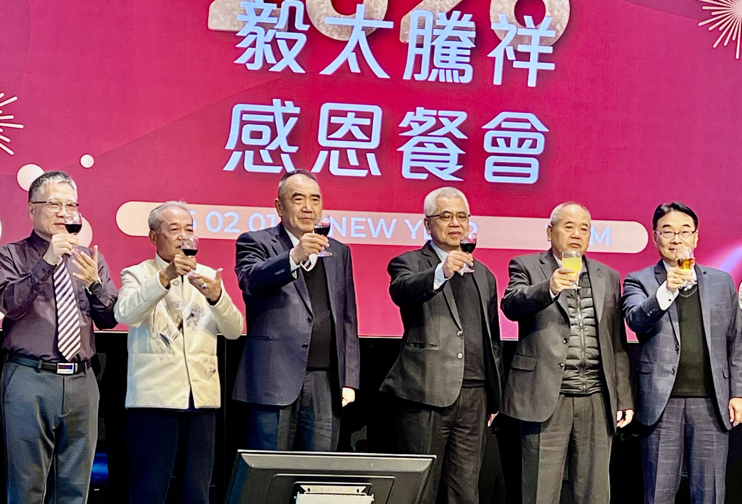 「毅太」董事長洪團樟兄弟(中左)和董事等感謝貴賓和員工們(記者李伯元攝)