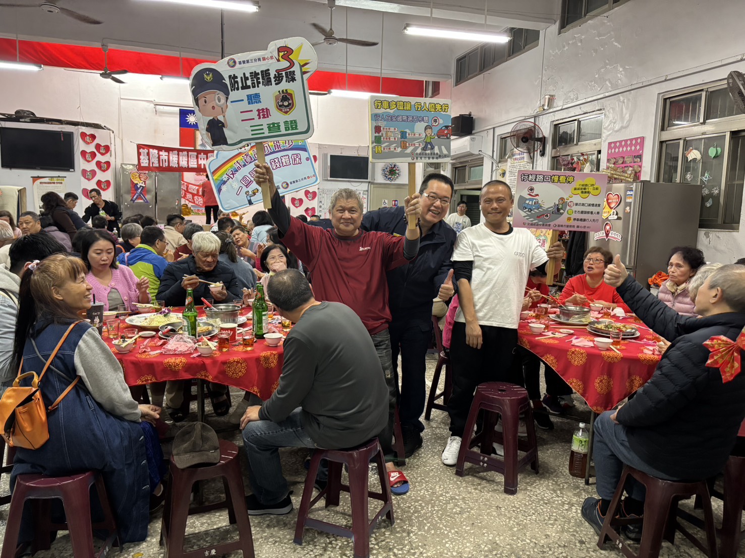 【記者張毅基隆報導】為強化民眾交通安全觀念及提升防詐意識,警三分局碇內派出所前往暖暖區中興社區,春酒活動現場進行犯罪預防宣導活動,針對「酒後駕車危害」及「常見詐騙手法」進行深入說明,吸引眾多社區居民熱情參與。