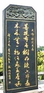 黃文榮董事長更在好友支持下,邀請當時和基隆有關的名人,將題字揮毫,請名師雕刻在石碑上,總共十面,安置在大佛院入門前廣場。基隆籍的謝修平、黃澤青、張通榮和我應邀,還有中央的首長游錫堃、王金平等人,我特別請學弟名書法家張炳煌為我選的聯語,用行草揮毫,可留傳千古。