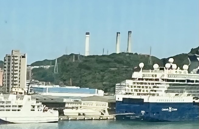 基隆協和電廠,三根大煙囪聳立港邊,將用天然氣發電,重啓核電後,希望有所改變。(記者李伯元攝)