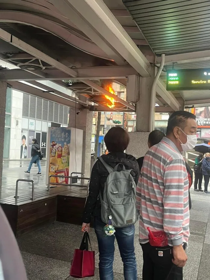 基隆市區二信循環站頂棚的電風扇疑似電線短路引起火苗。