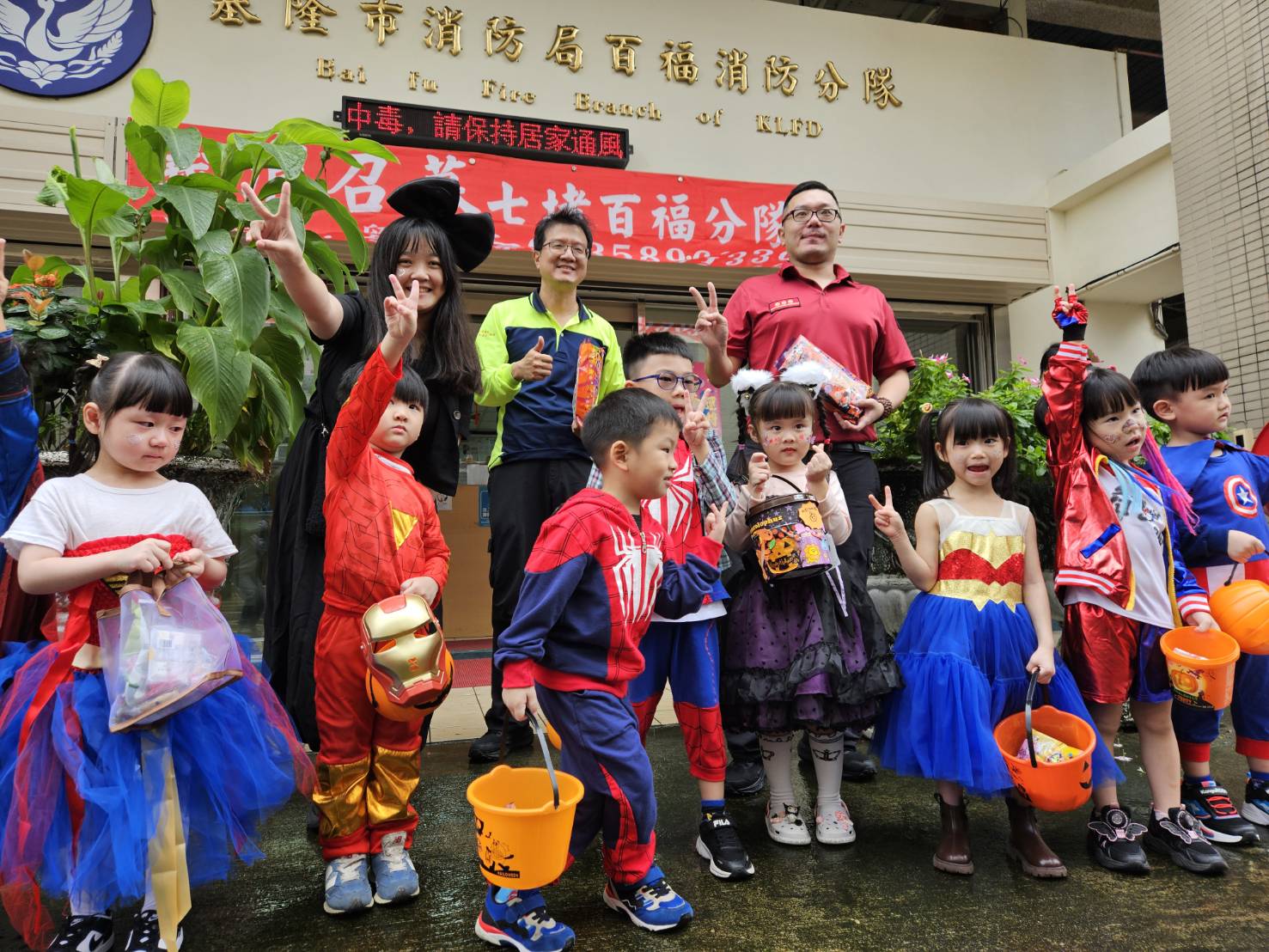 萬聖節「不給糖就搗蛋」,百福消防分隊化身防火小學堂。